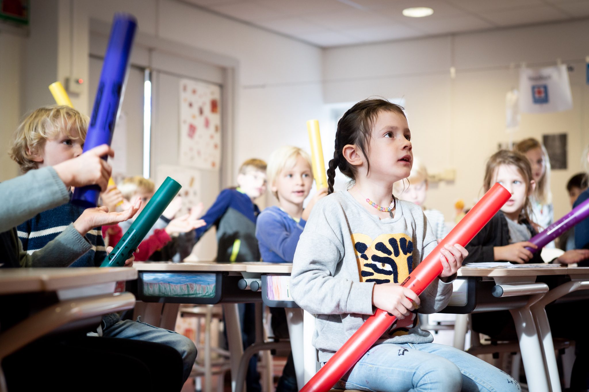 Muziek stimuleert creativiteit, motorische ontwikkeling én zorgt voor een betere concentratie. Ook bevordert muziek discipline en doorzettingsvermogen. Maar bovenal zorgt muziek voor heel veel plezier onderling en draagt het bij aan een veilig groepsgevoel in de klas. Kortom: muziek is onmisbaar op school!